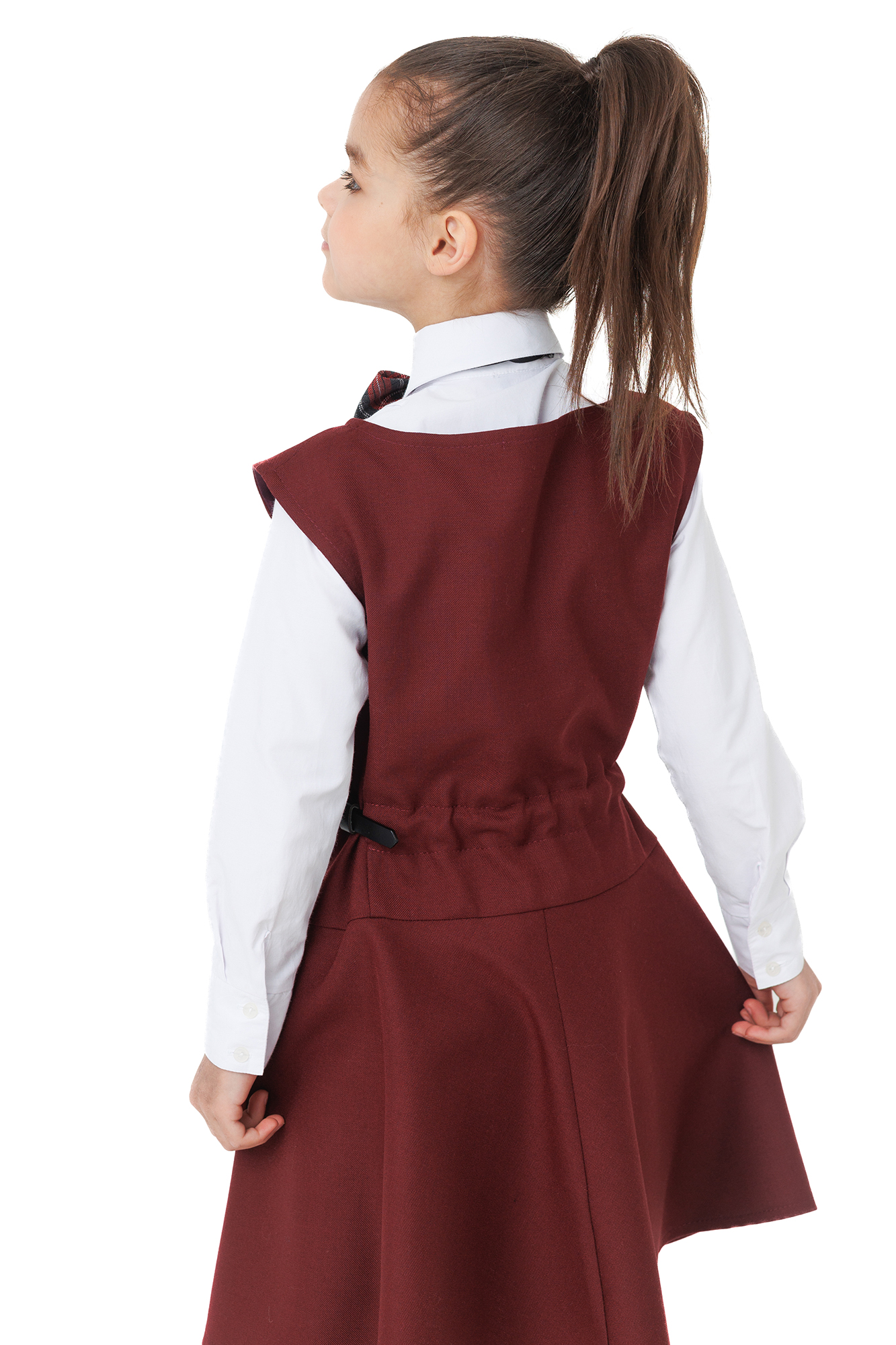 Сарафан школьный для девочки Кристи бренда Studio T из полушерстяной ткани борового и темно-синего цветов. Сарафан отрезной ниже линии талии, верхняя часть с боковыми рельефами по переду и спинке, нижняя часть - расширена на объем "полусолнце". Вырез горловины лодочка, на спинке на уроне линии талии кулиса, куда продевается ремешок, поставляется с изделием. Модель сарафана очень удобная для школы, повседневной носки, выполнен из ткани, которая не мнется, хорошо держит форму, долго сохраняет товарный вид, изделие можно стирать в машине в деликатном режиме, сушить на «плечиках». Кроме этого, модель имеет интересный дизайн, создающий милый образ, качественное исполнение.